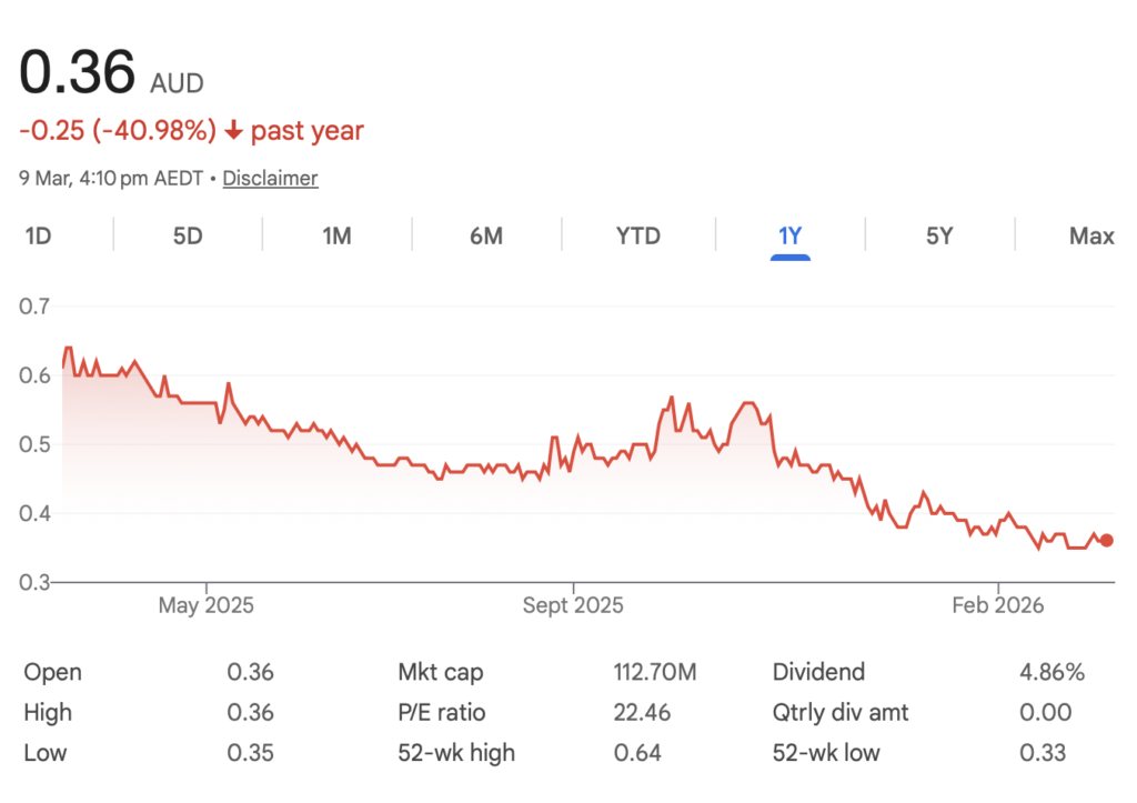 The company’s shares are currently trading around $0.36, down roughly 41% over the past 12 months. Over that period the stock has slid from a 52-week high of $0.64 to a low of $0.33, leaving the broadcaster with a market capitalisation of roughly $113 million.