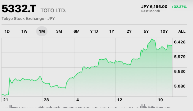 Shares in the Tokyo-listed group, code 5332.T, have jumped almost 30 per cent over the past month. Much of that gain has come since 17 February, when London-based activist investor Palliser Capital published a detailed presentation arguing that TOTO is one of the most undervalued beneficiaries of the artificial intelligence boom.