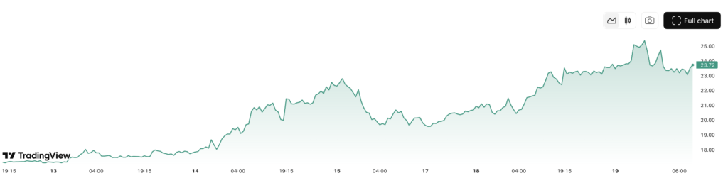Over the last week, the S&P500's VIX (above) has jumped over 38% from a tepid 18 points at the start of last week through to a peak of over 25 yesterday.