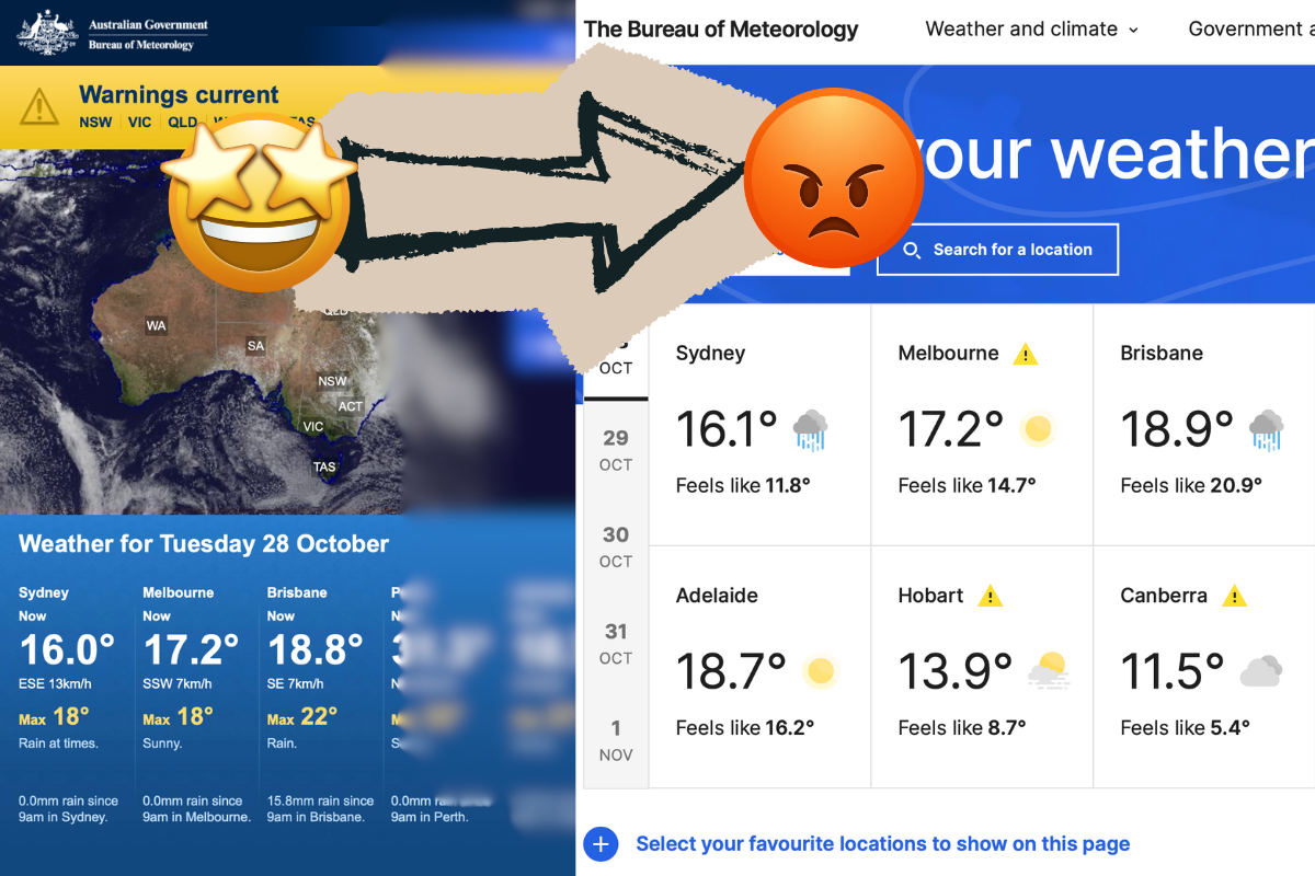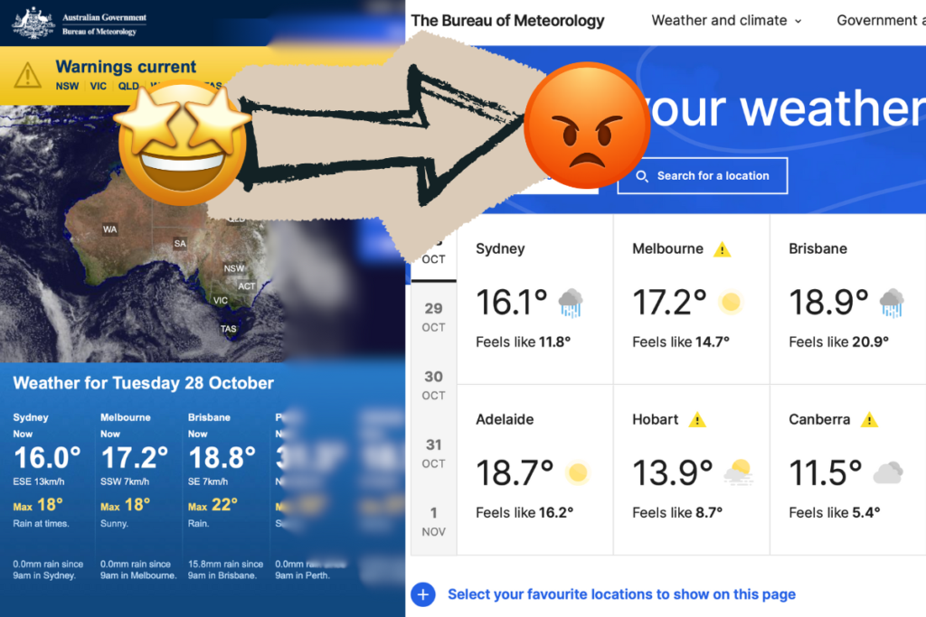 Old man yells at cloud: punters unhappy with Bureau of Meteorology's new website redesign