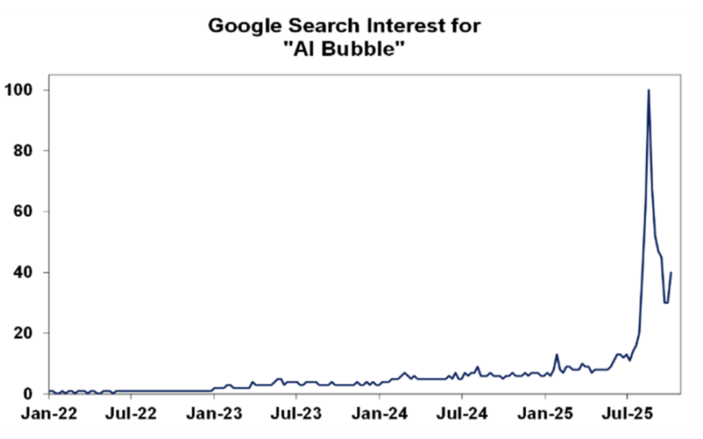 Related to this, bubbles don’t normally see lots of people doing bubble searches online so the surge in Google searches for an “AI bubble” since June may be a positive sign from a contrarian perspective, i.e. that we are not in a bubble yet.